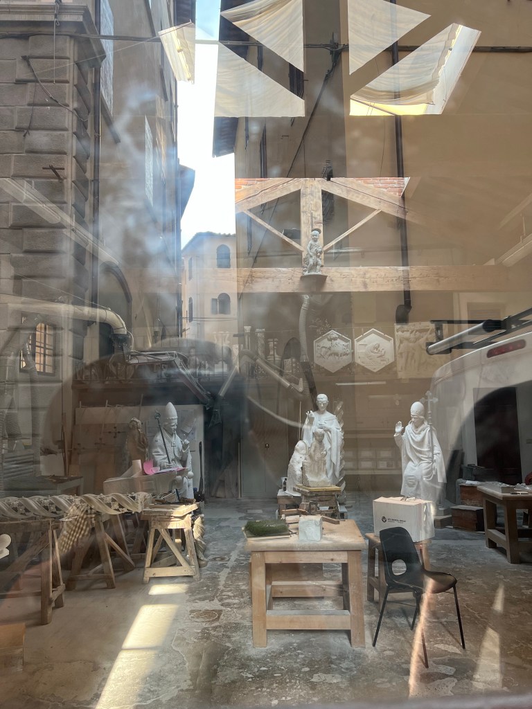 Although the guide told us to be in a hurry, she did stop to show us the shop where Michelangelo sculpted the Statue of David. Now, this same shop is where statues are restored.
