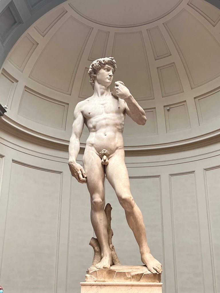 - David’s features (right hand and head) are disproportionate. This is because the statue was commissioned to be used to decorate the Florence Cathedral (the Duomo), but its nudity disqualified it, so it was originally placed in Palazzo Vecchio (and later moved to the Academy).