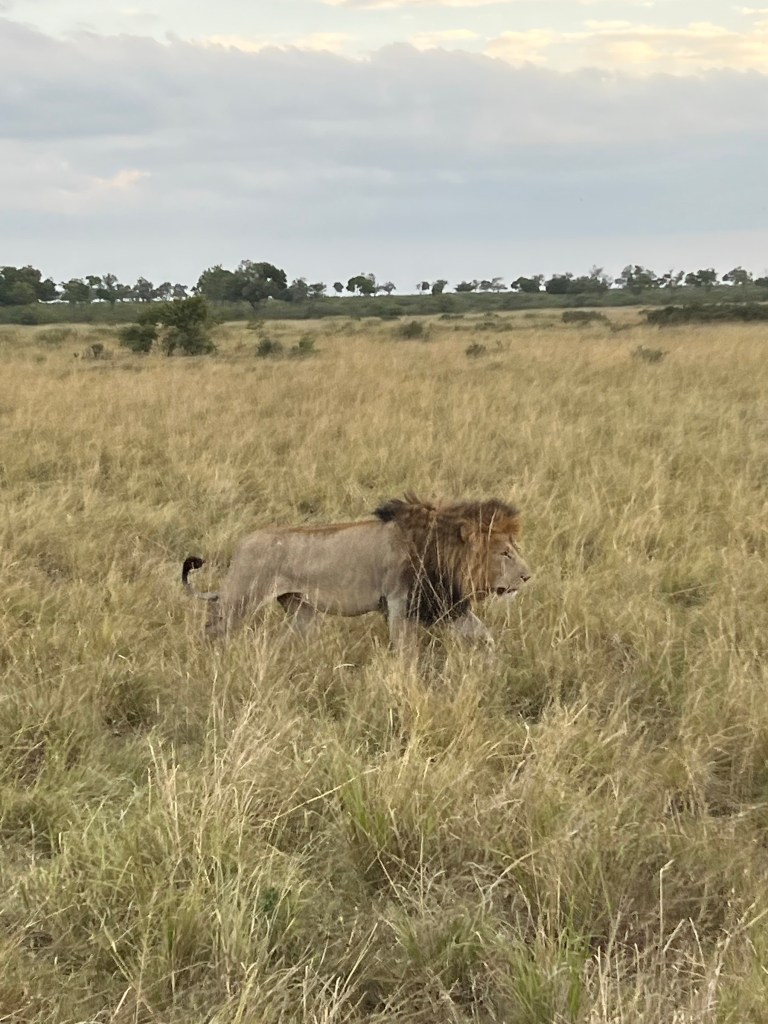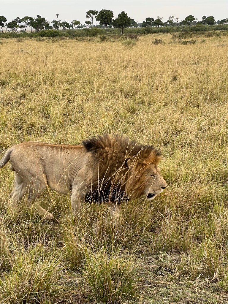 Male lions hunt alone and get tired easily, so they don’t walk for long before they lay down. We were super fortunate to get to see him walking by us, as the rest of our tour groups only saw him laying down (which is still pretty freaking amazing).