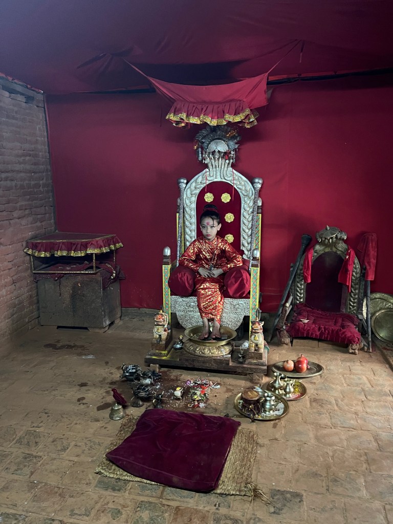 We learned that 80% of the country, which is about 30 million in population, is Hindu, 15% are Buddhist, Sikh, and Jain, and then 5% Christian. The Living Goddess is a Hindu goddess.