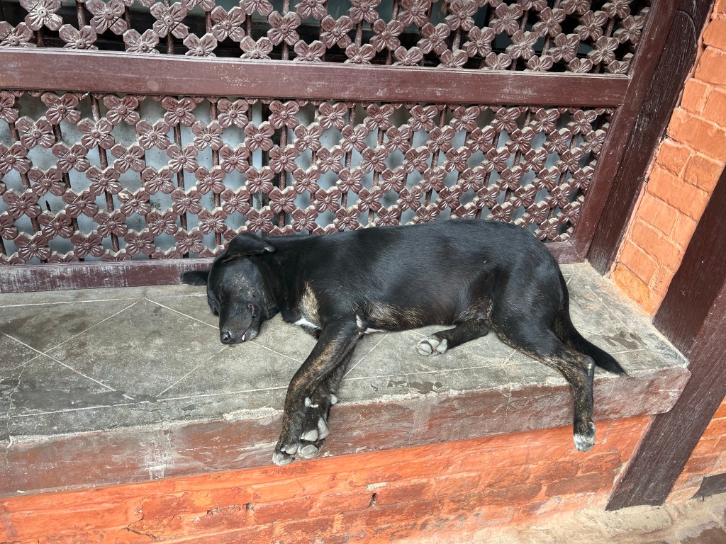 Throughout our tour, we noticed a lot of stray dogs. Dogs to Nepal are like cats to Rome, except there seems to be no dog ladies taking care of them. The dogs are very cute and mostly just sleep, not bothering anyone.