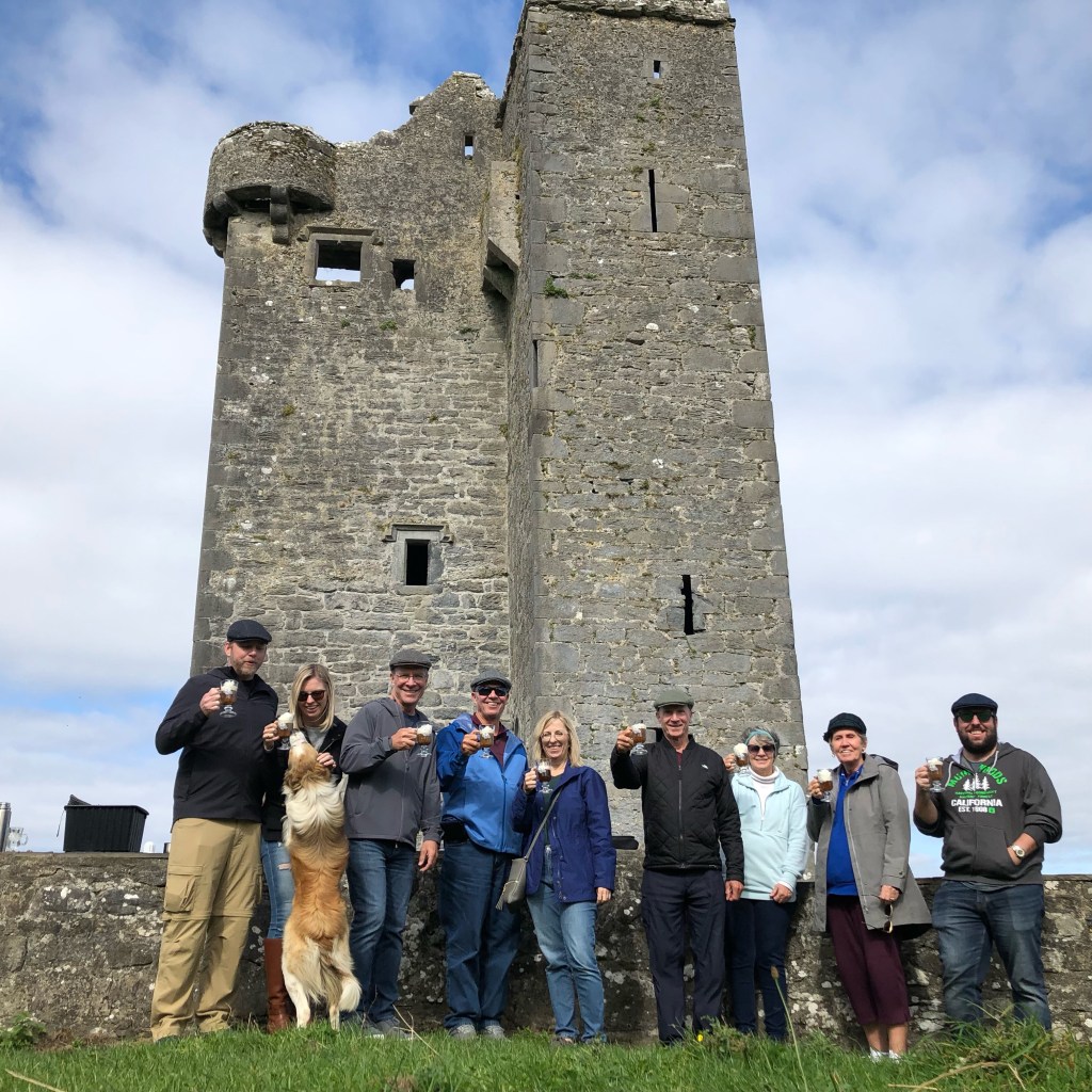 We enjoyed our Irish coffees, each gave the castle two very big thumbs up, and even got to enjoy a visit from a local dog.